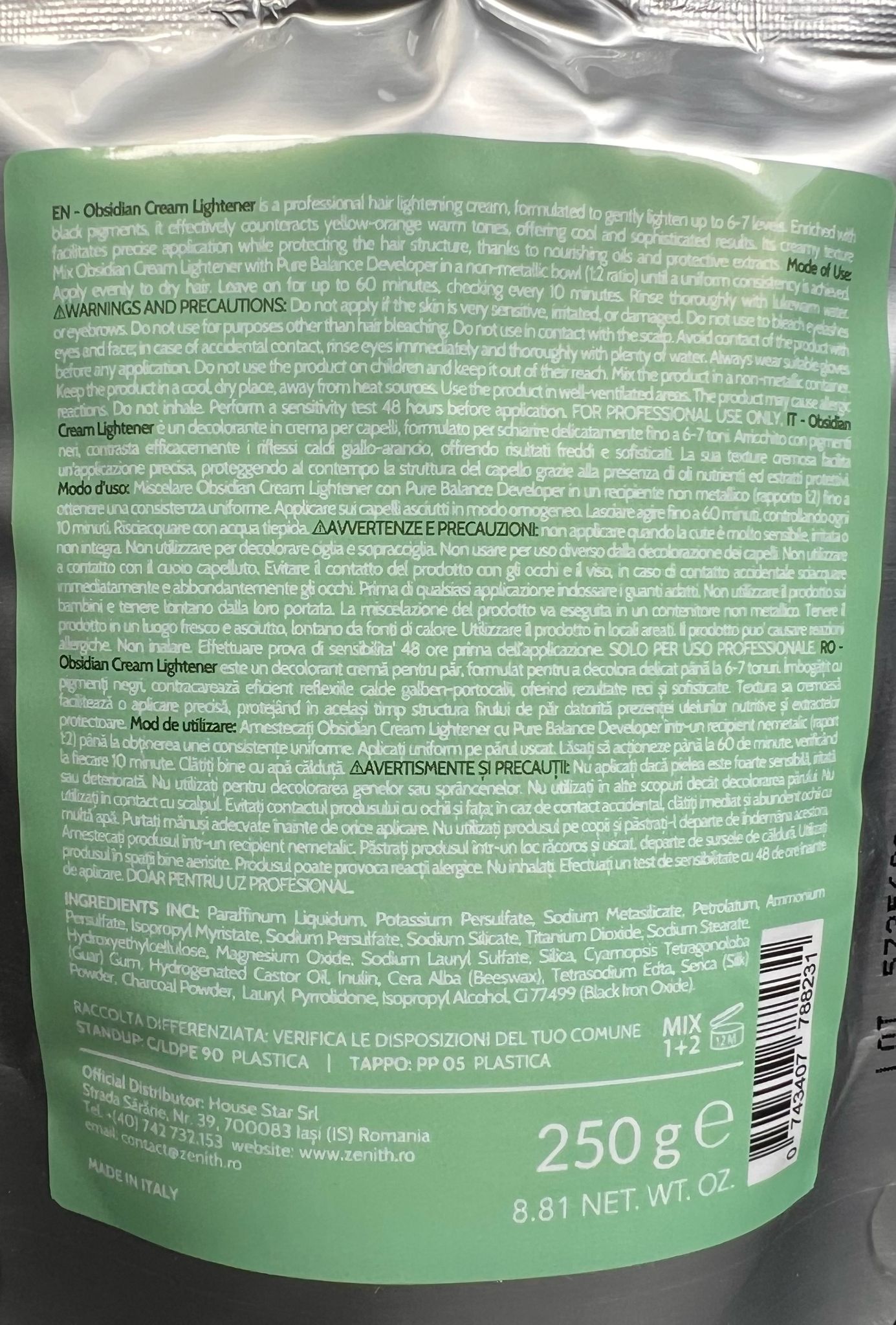 Obsidian Cream Lightener este un decolorant cremă pentru păr, formulat pentru a decolora delicat până la 6-7 tonuri.